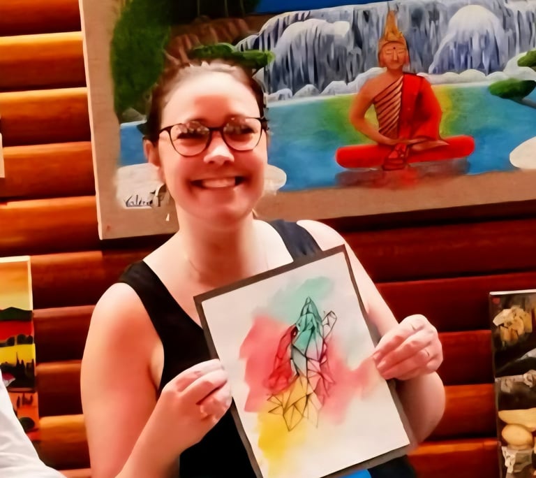 Elle propose d'aborder le dessin, la peinture et différentes techniques (abstrait ou figuratif), et pour les plus âgés un éventuel accompagnement du dossier pour l'option Arts Plastiques du bac.